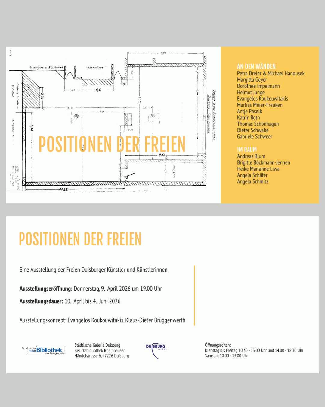 POSITIONEN DER FREIEN in der städtischen Galerie der Bezirksbibliothek Rheinhausen in 47226 Duisburg Händelstraße 6 ausstellen.